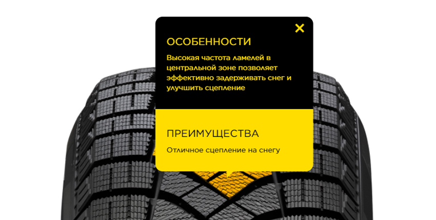 - Повышенная плотность ламелей в центральной зоне обеспечивает эффективное удержание снега, тем самым улучшая сцепление на заснеженной дороге.